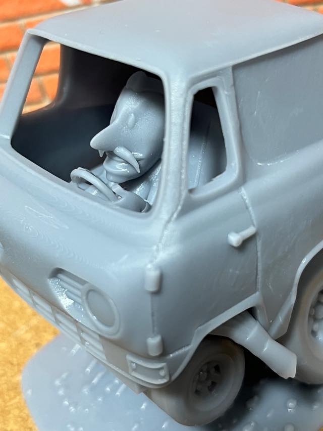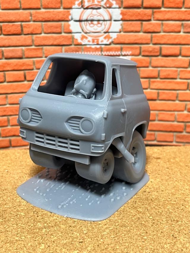 1965年のエコノラインをデフォルメの師デイブ・ディールスのスケッチをもとに3DCGにて制作、プリントしました。