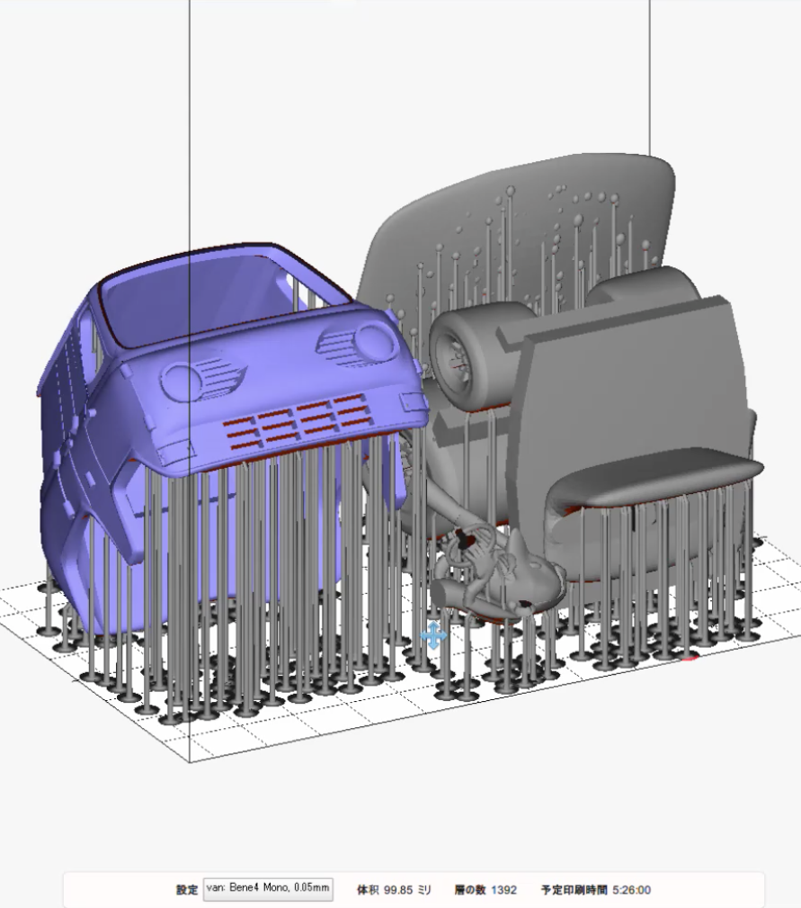 はじめ、大きい方のデータをそのまま使いましたが、ドライバーが心なしか小さいこととパーツを3分割から2分割にしました。