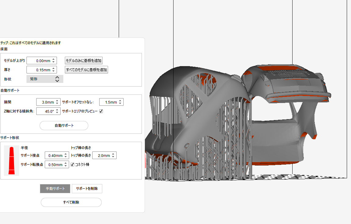 サポート材を削除し、仕上がった直後
